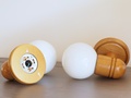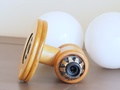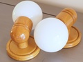 2 appliques en bois très vintage avec ses globes ronds en opaline, de la marque connue ALLIBERT.