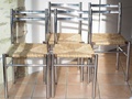 Série de 4 chaises de style moderniste avec l'assise paillée comme à l'ancienne venant adoucir le côté froid du métal.