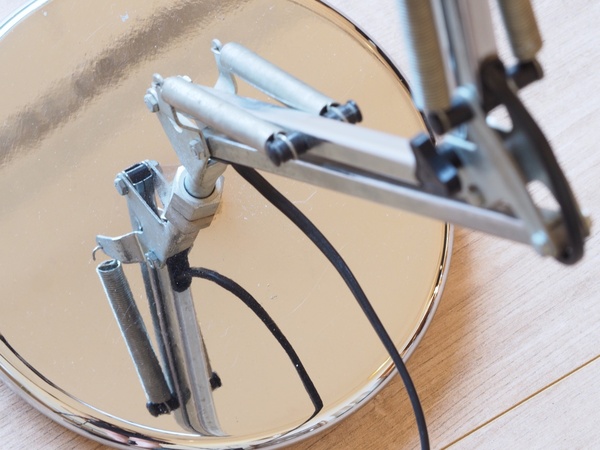 Belle grande lampe ALUMINOR de bureau à 2 bras articulés de style architecte. Entièrement chromée, elle s'adapte facilement à votre intérieur.