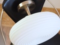 Fabricant espagnol connu pour sa modernité, ACB signe ici un modèle inspirant par cette opaline ondulée. Meringue flottante au plafond, ou soucoupe de la période Space Age, elle est à la fois moderne, discrète et réconfortante.