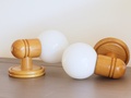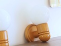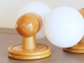 2 appliques en bois très vintage avec ses globes ronds en opaline, de la marque connue ALLIBERT.