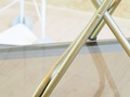 - État: Etat d'usage. Traces sur le métal. Peinture dorée plus claire au niveau du dossier. Traces infimes sur le tissu.