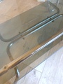 - État: Etat d'usage. Entièrement nettoyée. Traces sur le chrome et le verre. Plaque de verre du dessous non d'origine je pense. Un petit impact à un angle (voir photo).