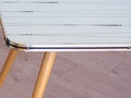 - Matières: Formica, bois, laiton, plastique